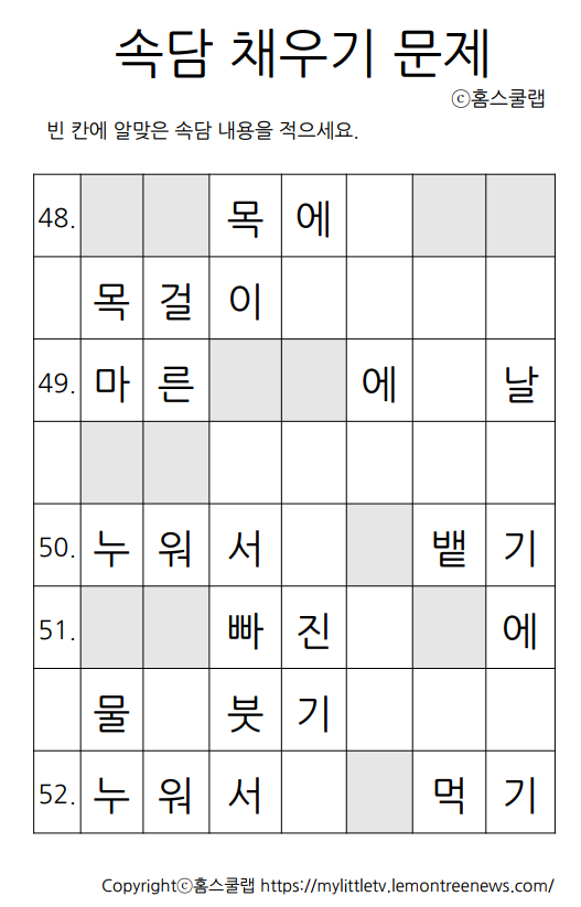 속담 100가지 모음 빈칸