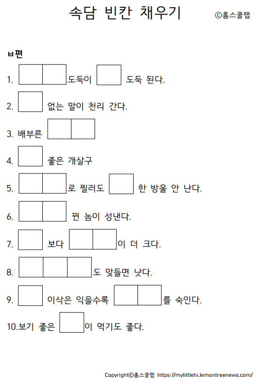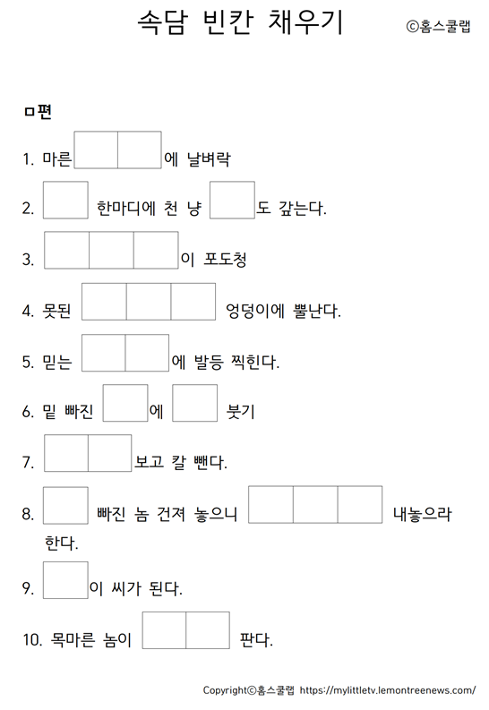 1. 속담 빈칸 채우기 파일 다운로드 ㅁ~ㅇ편