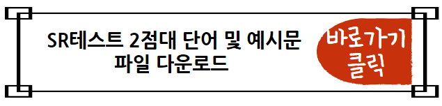 이 단어들을 잘 익히고 응용할수 있어야 SR테스트 2점대가 유지되고 3점대로 넘어갈 수 있는 단단한 기반이 된다는 사실을 염두에 두세요.