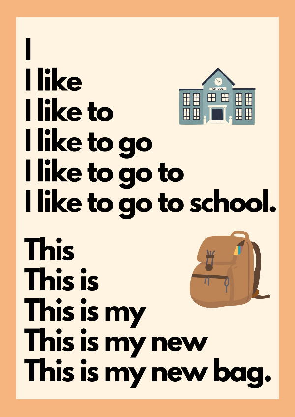 아래의 사이트워트 피라미드를 아이와 같이 읽어보세요. 한줄 한 줄 읽어가며 사이트워트를 자연스럽게 익혀가며 응용해 볼 수 있습니다.