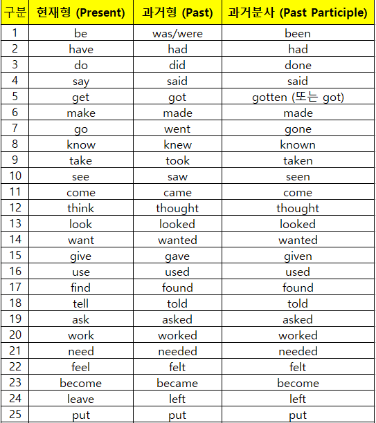 영어 공부의 기본기는 동사를 알고 그 동사의 현재,과거, 과거분사의 규칙, 불규칙 동사를 아느냐에 있습니다. 유치원에서부터 시작하는 영어부터 초등영어, 중등영어, 수능영어, 토익, 토플, 편입영어 모두 동사는 영의 기본이 됩니다.