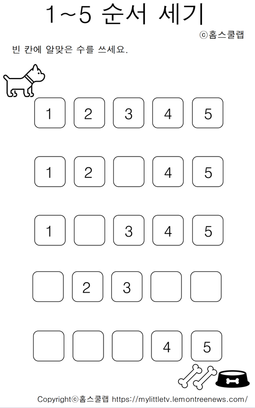 (무료나눔) 1~5 순서 세기 연습 학습지