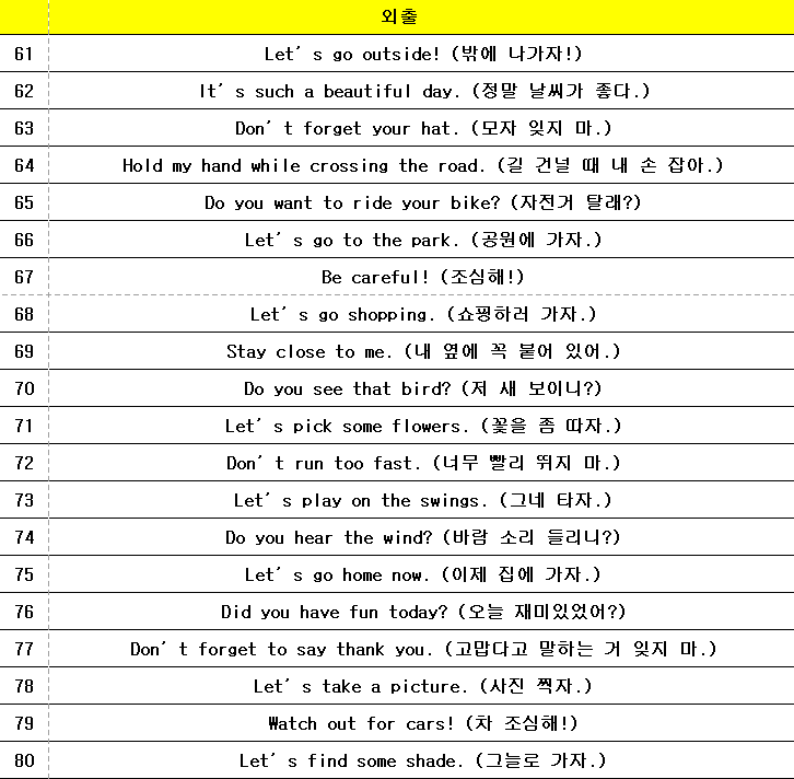 엄마표 영어회화 표현 100개(아침,식사,공부,외출,기타) 파일 나눔