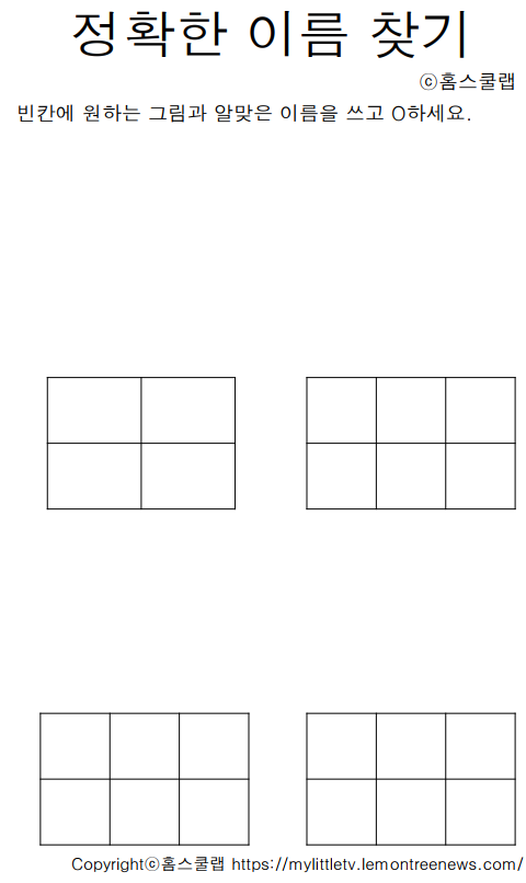 그림을 보고 알맞은 이름을 찾아 동그라미 하는 학습지를 만들어 보았습니다.