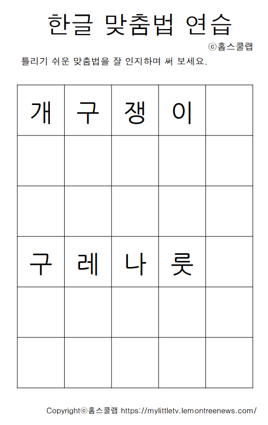 학습영역  틀리기 쉬운 맞춤법 쓰기 연습을 통한 문해력 기반 향상