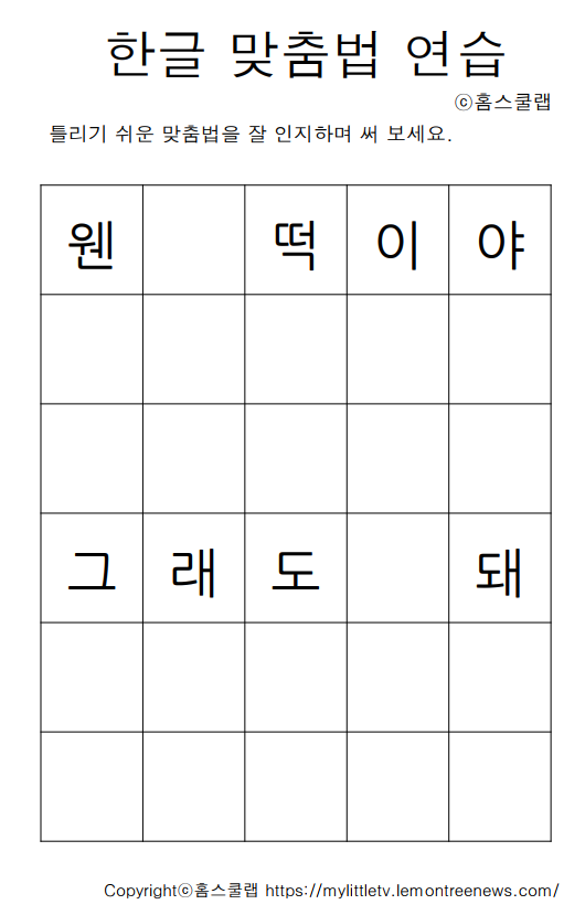 (어휘력) 틀리기 쉬운 맞춤법 쓰기 연습 2탄 초등학생 학습지
