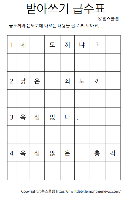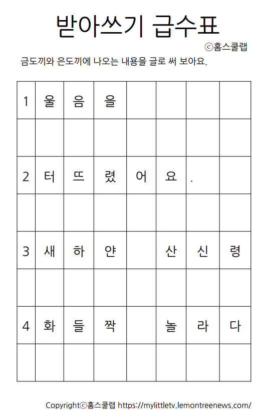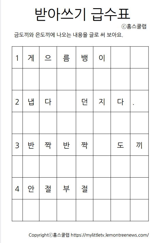 학습영역 전래동화 금도끼와 은도끼 기반 받아쓰기 급수표 연습을 통한 한글 어휘력 및 문해력 향상 기대