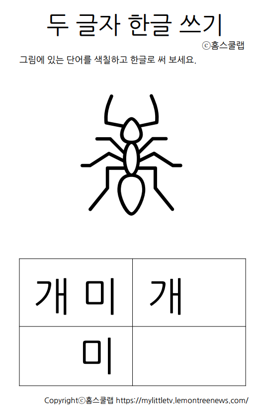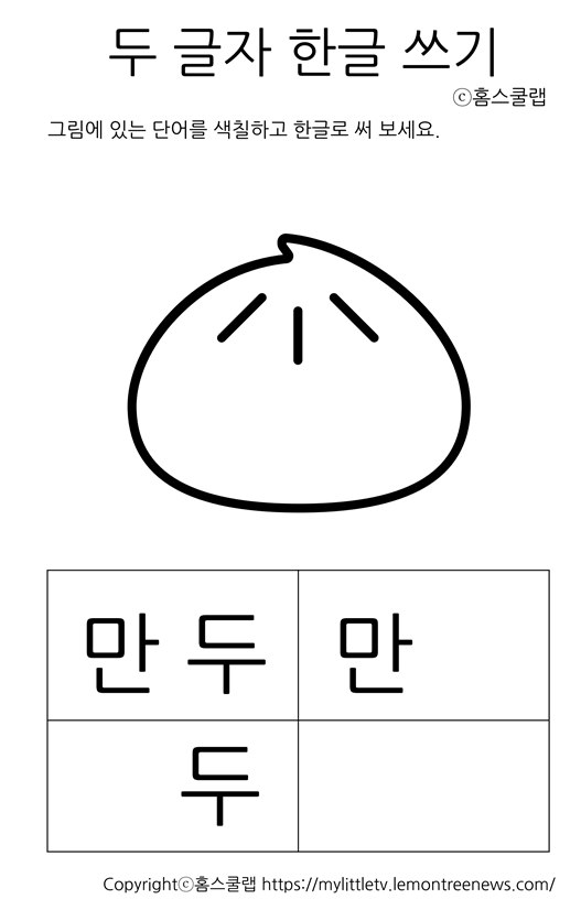 | (무료다운) 받침 없는 두 글자 한글 쓰기 연습 홈스쿨링 학습지 (0) | 2023.07.03 |