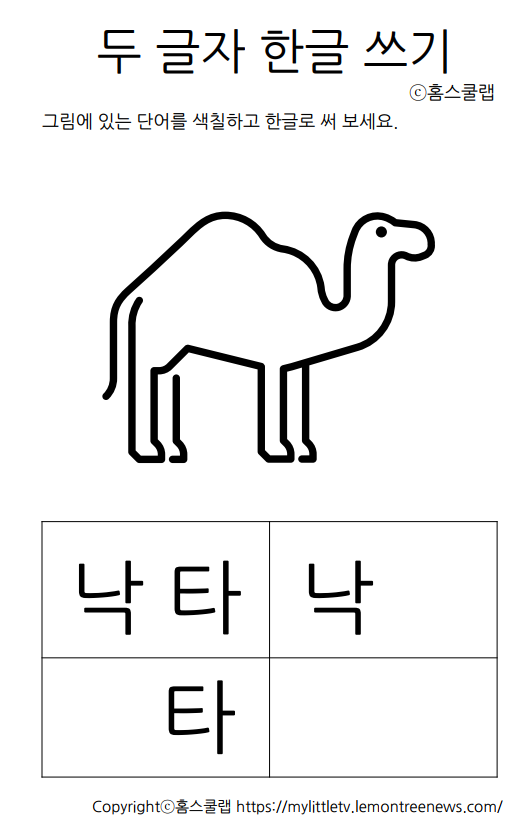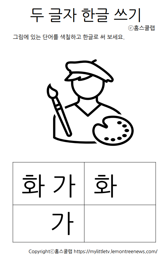 (무료나눔) 두 글자 한글쓰기 연습 학습지 1탄