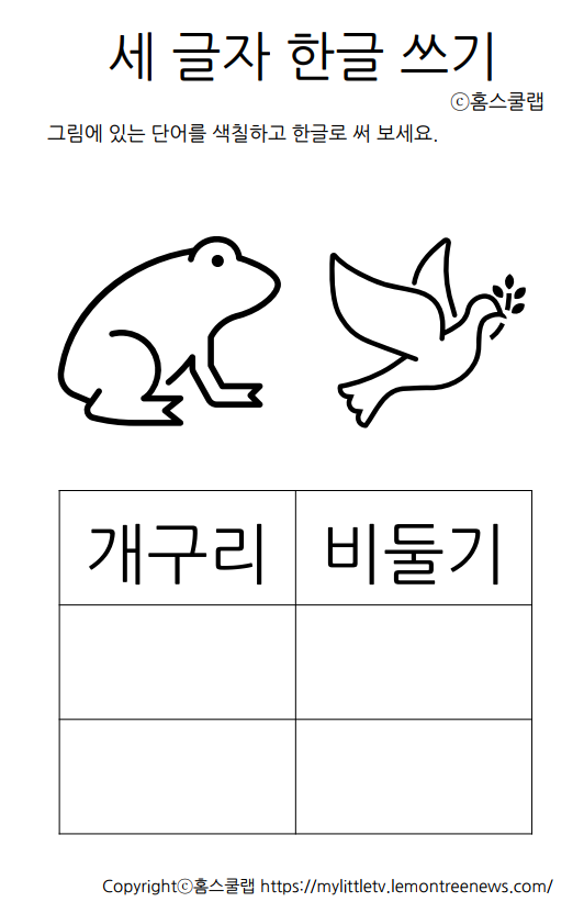 | (무료한글) 받침 없는 두 글자 쓰기 연습 엄마표 학습지 hangul (0) | 2023.07.03 |