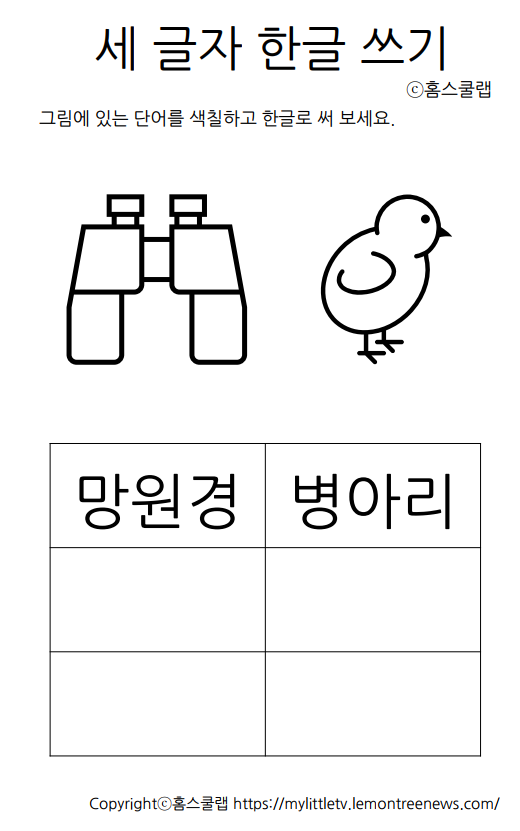| (무료자료) 세 글자 한글쓰기 연습 학습지 1탄 (0) | 2023.06.23 |