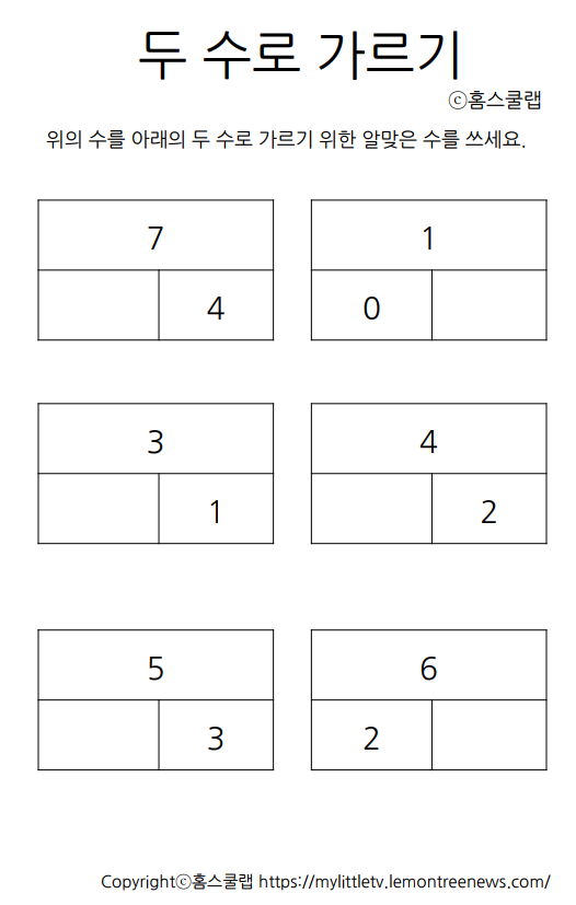 | (무료 PDF) 10의 수 가르기 엄마표 일일수학 초등 학습지 (0) | 2023.06.26 |