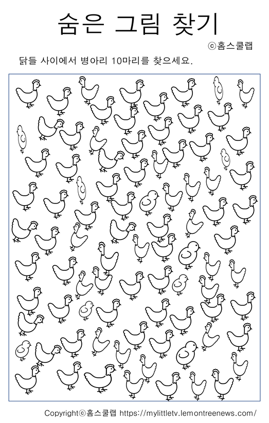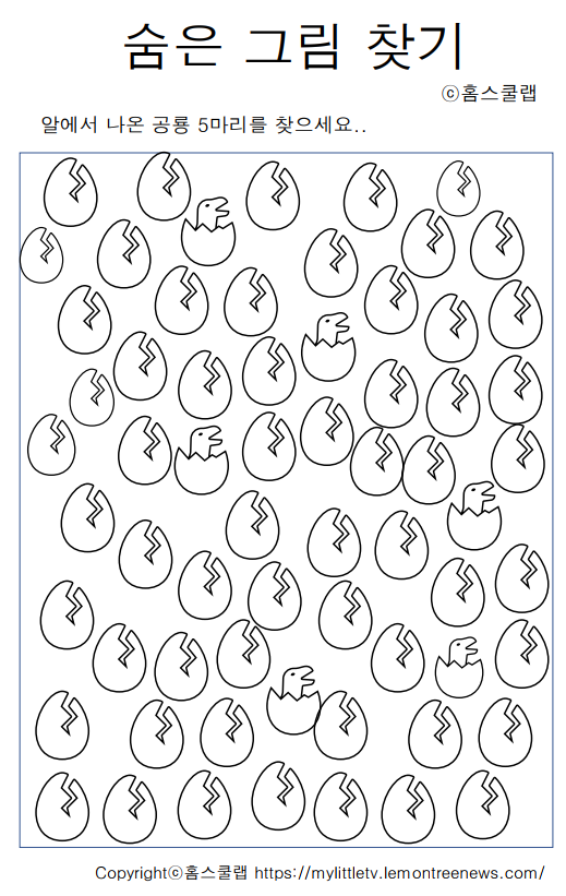 (무료학습지) 창의력 숨은그림 찾기 도안 엄마표 놀이 1