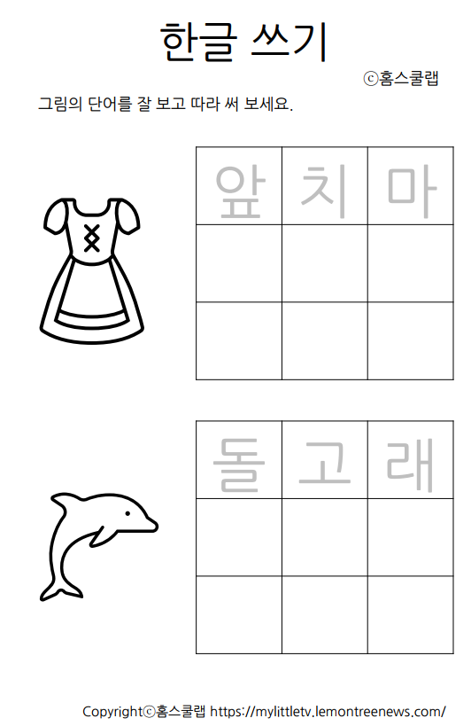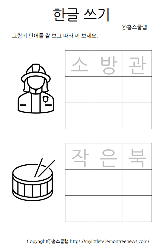 (무료나눔) 세 단어 받침있는 한글쓰기 연습 엄마표 홈스쿨링 hangul